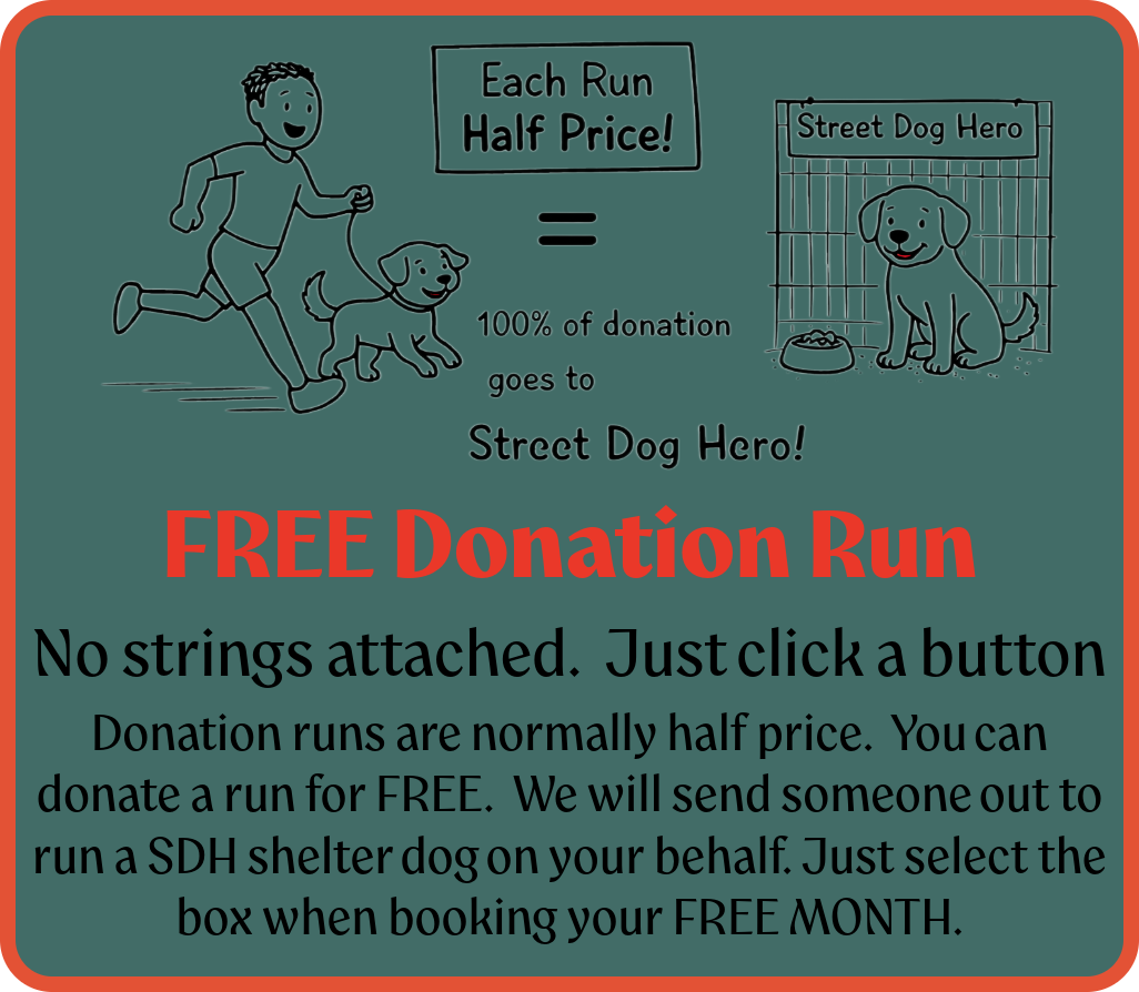 “1 Month” = 30Min Run, once a week, for 4 weeks. This page is unlisted and exclusive to Street Dog Hero newsletter.